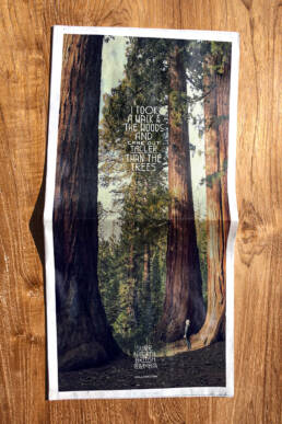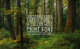 The result was a bold, tactile identity that feels carved from the land itself. At its core is Great Forest, a custom hand-carved wood typeface designed to be organic, imperfect, and human. Each letter carries the marks of traditional carving tools, with spacing based on the width of the blade. This allows the type to stack vertically, echoing the structure of British Columbia’s totem poles.